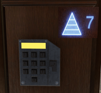 The exit door is locked with a security code.